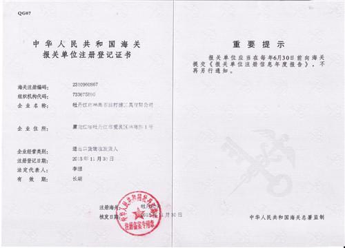 海關(guān)報(bào)關(guān)單位注冊(cè)登記證書